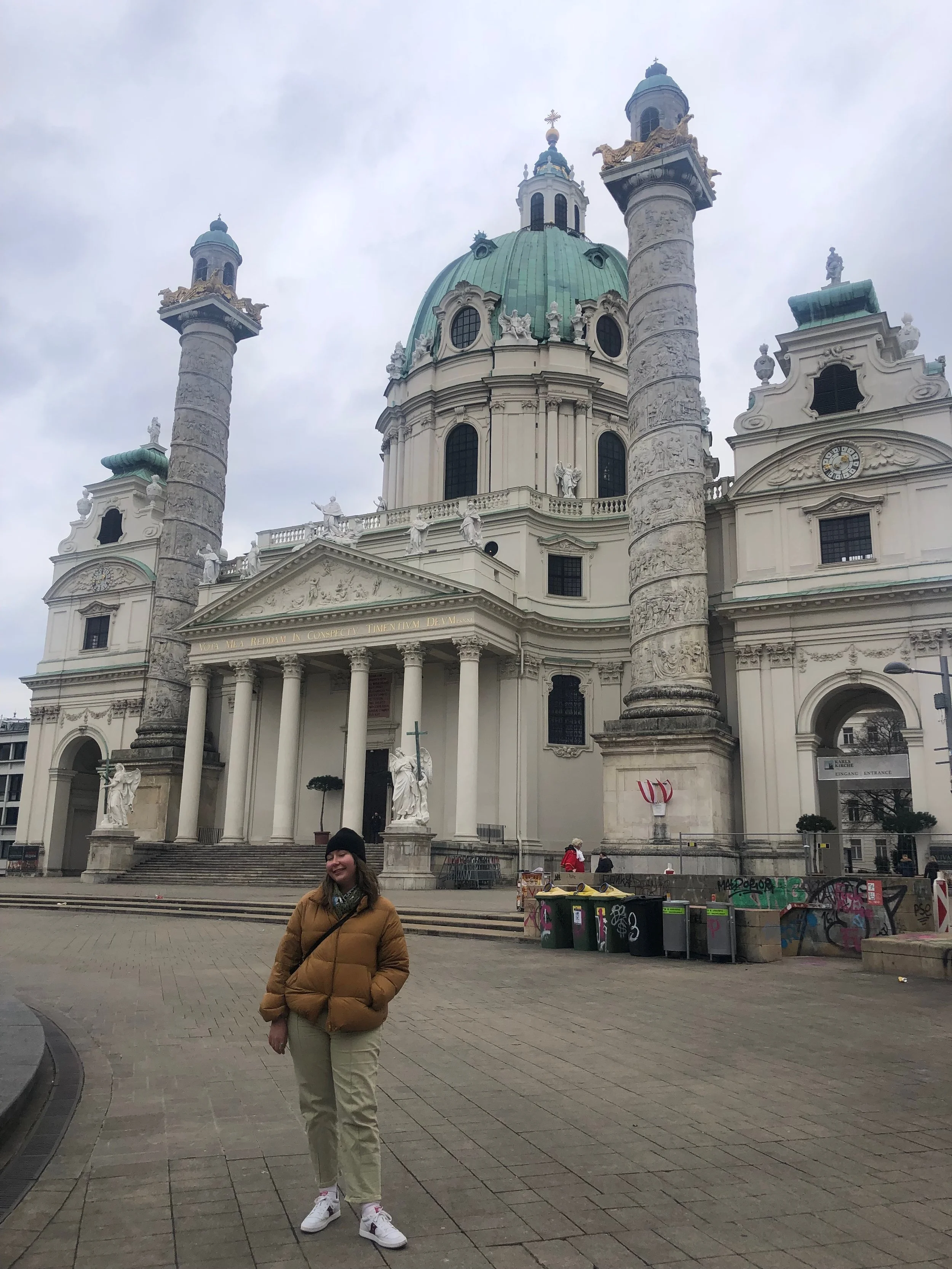 Another church that I think its less visited, but I found the most beautiful, is the Karlskirche. The exterior is beautiful and doesn’t look like many of the other churches you will find of Europe. The interior (8 euros for adults, 4 for students) is really beautiful and you can go to the roof for a view of the city. In the inside you can also ride an elevator up to near the ceiling so you can see the intricately painted ceiling up close, which I have never seen before.